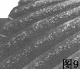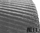 圖4中刻傷的早期階段在齒輪上部顯示出斑點的渡霜似樣式.損傷在這個階段是輕微的。