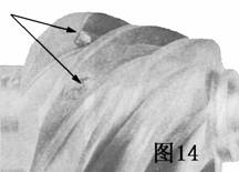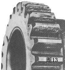 圖13麻點毀壞齒輪的齒面。