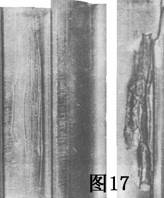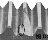圖18是齒輪的典型疲勞缺陷,其特點是有光滑的地方.它是由重的載荷或震動載荷(不正確的換檔和操縱離合器)造成的。